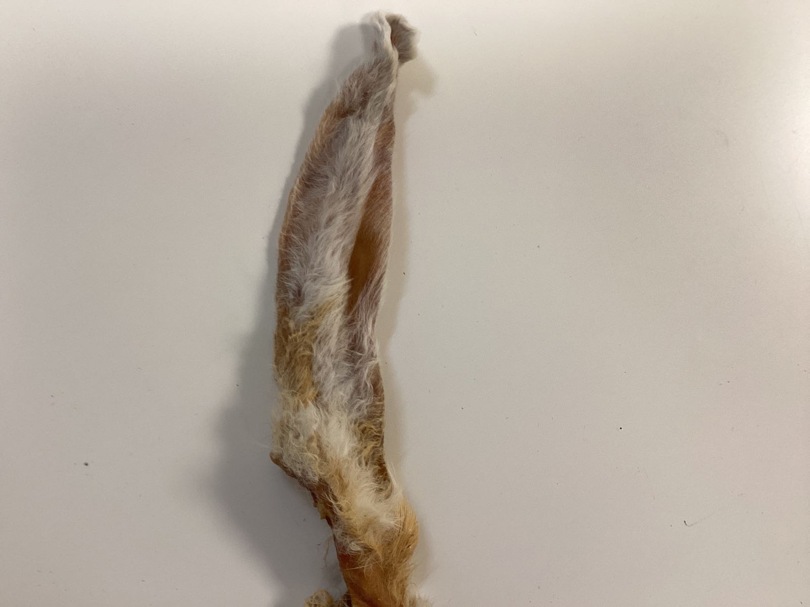 100 % kaninöron med päls, torkade | Förvaras svalt och torrt.